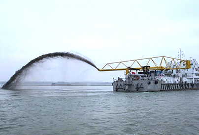 利用挖泥船將航道內(nèi)的泥土挖出后,使用管線將挖出的泥土排放到需要進(jìn)行回填的港口或碼頭上,通過(guò)泥土回填的方式來(lái)使港口和碼頭填筑到需要建設(shè)的高度,這便是吹填工程。